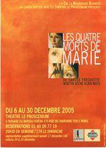 Avec le personnage de Marie, Carole Fréchette lance un appel à la vie. Des gravités parlées avec tendresse. Un théâtre où la parole est inscrite au cœur du poétique.