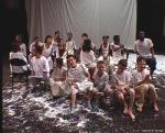Voilà donc une manière originale et légère de reconstituer sur scène la fameuse tour de Babel. Cette réunion des âges et des races possède le mérite de construire une belle petite utopie, celle d’un monde harmonieux où les hommes cohabitent dans la bonne humeur. L’harmonie des êtres est d’ailleurs redoublée par celle de la scénographie : les corps se meuvent avec agilité devant un écran aux couleurs chatoyantes. Scintillement de l’onde, tableaux impressionnistes ou surréalistes se succèdent dans le film du décor. Devant eux s’agitent vêtements colorés et draps blancs au son d’une musique aux multiples influences. Le spectacle est total.Reste à savoir si c’est le spectacle de l’école ou une école du spectacle. Car le fil directeur (le thème de l’éducation) est souvent perdu de vue au profit de scènes incongrues, d’exercices corporels qui rappellent les cours de théâtre. L’ensemble est finalement assez disparate et décousu (de fil rouge !). On est interloqué, intéressé, voire charmé par ces enfants qui jouent (dans les deux sens du terme), mais pas pleinement convaincu. Peut-être nous faudrait-il un cours sur cette démarche théâtrale...
