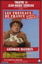 Alors que le cinéma met à nouveau Molière à l’affiche, le Théâtre 14 propose une adaptation aussi audacieuse qu’astucieuse de George Dandin. Cette comédie en trois actes et en prose fut jouée pour la première fois en juillet 1668 à l’occasion des fêtes données par Louis XIV en l’honneur de sa victoire sur la couronne d’Espagne. Le sujet de cette satire sociale, très applaudie à Versailles, est des plus plaisants. George Dandin est un riche paysan, qui, pour s’élever dans l’échelle sociale, et devenir le ridicule George de la Dandinière, épouse la fille d’un couple d’aristocrates désargentés, Mme et M. de Sotenville. Mais ceux-ci, une fois renfloués, oublient de savoir gré à leur gendre de les avoir aidés, et font peu de cas du sort de leur fille, Angélique, bien malheureuse d’être la première victime de cette mésalliance. Or l’histoire bascule quand Angélique tombe amoureuse du beau Clitandre. Dandin, confronté alors au mépris de ses beaux-parents et à l’infidélité de sa femme, battu et devenu la risée de tous, n’à plus qu’à "se jeter dans l’eau la tête la première"...Le comique de la pièce est fondé en grande partie sur les quiproquos causés par la volonté du protagoniste de prouver coûte que coûte l’adultère. Alors que le spectateur sait Dandin dans son droit, les circonstances se retournent sans cesse contre le paysan parvenu et donnent raison à la belle-famille. Bien sûr, la réussite de l’ensemble doit beaucoup au texte, particulièrement savoureux, de Molière. Mais elle ne serait pas ce qu’elle est sans la prestation des acteurs, d’une part, sans une mise en scène pétillante, d’autre part. Le jeu de Marcel Maréchal (Dandin) oscille avec une épaisseur d’humanité exceptionnelle entre le grotesque attaché traditionnellement à la figure du mari cocu et la douleur touchante d’un homme qui découvre qu’à cause de sa vanité, il a tout perdu. De farce qu’elle était, la pièce tourne alors à une réflexion à la fois grave et ludique sur la futilité humaine. On apprécie aussi le rôle de Jacques Angéniol, délicieusement odieux, et plus encore qu’une femme, dans le rôle de la belle-mère. Quant à la mise en scène, elle se recommande par un anachronisme de bon goût : l’histoire est transposée dans un décor balnéaire des années 30. Les années folles... Elles aboutiront à l’une des plus sombres tragédies de l’Histoire. Mais pour l’instant, il fait beau ; les corps se dénudent et l’amour se libère ; tout le monde s’amuse, le public y compris, au détriment de ce vieux Dandin habillé à l’ancienne mode. Vanitas vanitatum...