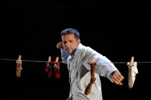 Des chaussettes... et encore des chaussettes. En un énorme tas, trônant au beau milieu de la scène, des petites, des grandes, des vertes, des bleues, des rouges, des jaunes... des chaussettes par milliers ! Et alors, direz-vous, quel rapport avec Les Petits Enfants du siècle ? Quel rapport entre ces petits bouts de laine et l’histoire de Josiane, issue d’une famille (très) nombreuse de Bagnolet ? Nous vous répondrons alors que ces chaussettes sont des symboles ! Elles représentent les différents membres de la famille : deux grandes beiges pour les parents, des plus petites, très colorées, pour les enfants et une paire pour les jumeaux, évidemment ! Voilà les compagnes de scène de Jérôme Sauvion ; voilà le seul "effet spécial" de sa mise en scène, très sobre. Il les utilise pour raconter son histoire, ou plutôt celle de Josiane. Car c’est elle l’héroïne et narratrice du roman de Christiane Rochefort. C’est donc, tout naturellement, sa voix que transmet l’acteur, metteur en scène et adaptateur du texte ; il se glisse à merveille dans la peau de cette jeune banlieusarde au parler populaire. Il/elle narre le quotidien de sa famille de Bidochon, qui ne cesse de s’agrandir. A l’évocation de chaque naissance, une chaussette, soigneusement pendue sur un mince fil par Jérôme Sauvion, vient symboliser le nouveau né. Et le bruitage d’une caisse enregistreuse de souligner le gain de la famille : une machine à laver à la naissance de Patrick, un "frigidaire" à celle de Catherine... et l’espoir d’une "bagnole" si jamais ces Bidochon atteignent les neuf gosses ! Ah, ces allocations familiales, quelle aubaine !Josiane est la seule à ne pas se réjouir : en tant qu’aînée, elle s’occupe de toute cette marmaille et n’a plus de temps pour elle. A onze ans, son petit moment de bonheur, c’est celui des devoirs, le soir, quand tout le monde est couché ; elle se livre alors à son activité préférée : l’analyse grammaticale ! Et puis viennent le catéchisme, le certificat d’étude et, surtout, les garçons. Josiane se laisse ainsi entraîner par la vie et suit son destin de fille de cité. Voilà ce que Jérôme Sauvion relate ; adoptant le plus souvent la voix de l’héroïne, mais livrant également des répliques de la mère ("Ah ce que je suis fatiguée !") ou du père ("Si on peut même plus regarder la télé tranquille..."), il fait revivre avec bonheur l’histoire de ces Petits enfants du siècle. On retrouve bien l’univers du roman de Christiane Rochefort et on s’y laisse porter par la voix de l’unique protagoniste. Seul avec ses chaussettes, il réussit l’exploit de nous faire croire à son "tout petit monde".